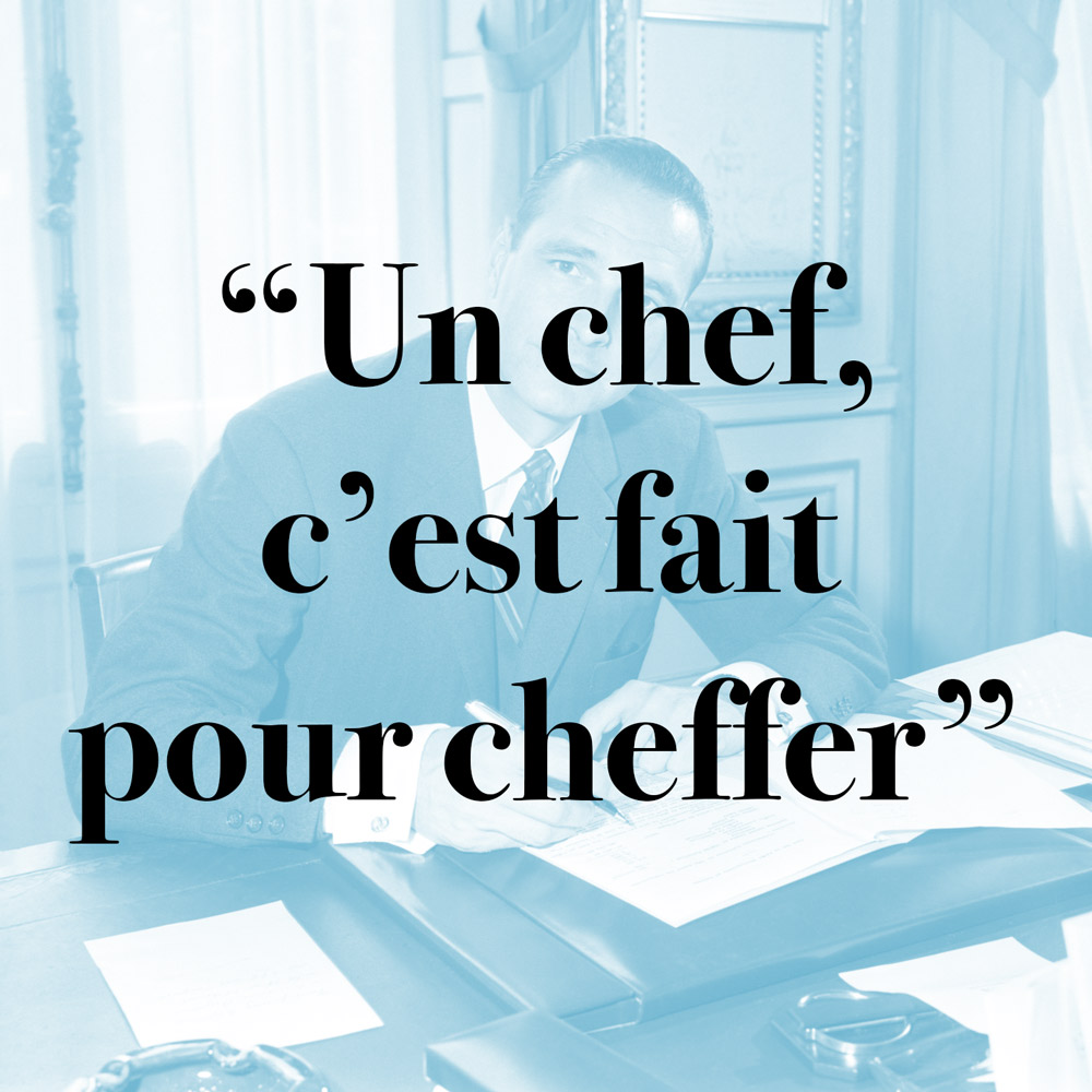 Chirac et Sarkozy. L’autorité est une vertu première, il le fait savoir, et de quelle manière ! Le mot (public) le plus dur vise Sarkozy, le 14 juillet 2004. Il n’oublie pas la trahison de 1995. Chef de fort caractère, il complète son autoportrait en montrant qu’il sait déléguer.