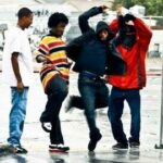 <u>Danseurs :</u> No Noize (blouson rouge), Man (blouson noir), BJ (polo rayé), Dreal (t-shirt blanc).
