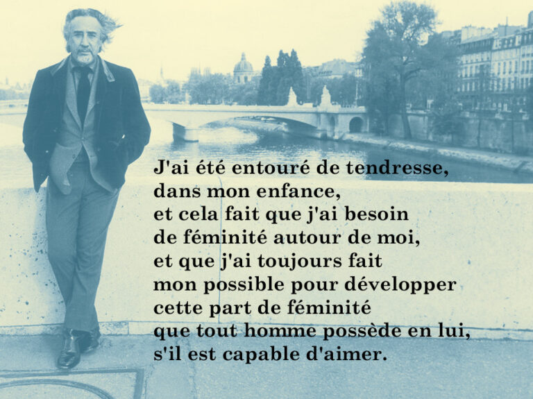 J’ai été entouré de tendresse, dans mon enfance, et cela fait que j’ai besoin de féminité autour de moi, et que j’ai toujours fait mon possible pour développer cette part de féminité que tout homme possède en lui, s’il est capable d’aimer.