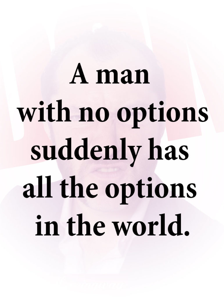 A man with no options suddenly has all the options in the world.