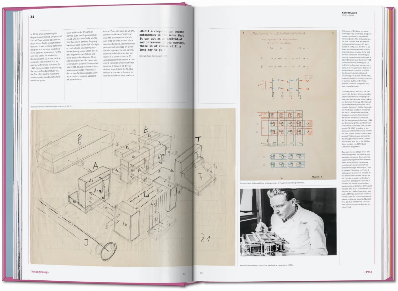 The Computer retrace cette évolution pas à pas, de la première machine à calculer imaginée au 19e siècle aux premières expériences de conduite automatisée dans les années 1920, des ordinateurs de bureau surdimensionnés des années 1950 aux appareils portables et connectés que nous connaissons aujourd’hui. Jens Müller livre une interprétation visuelle de l’émergence de l’ère informatique, jusqu’alors inédite. L’ouvrage raconte aussi le parcours des visionnaires, pionniers et entrepreneurs qui ont fait l’histoire de la technologie. Il combine visuels captivants, documents historiques et explications approfondies pour mettre en lumière les événements majeurs de l’histoire informatique, en couvrant l’invention des machines le codage, le développement des logiciels, ainsi que l’influence de la technologie sur le paysage politique actuel.